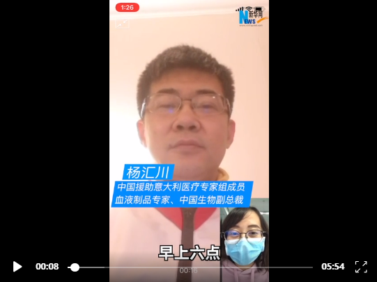 杨汇川说,出发以来,他收到了很多朋友和同事的祝福和问候,希望通过新华网的连线转达对他们的感谢。他说:“把抗击疫情的‘中国经验’分享出去,我相信一定能取得很好的效果。”